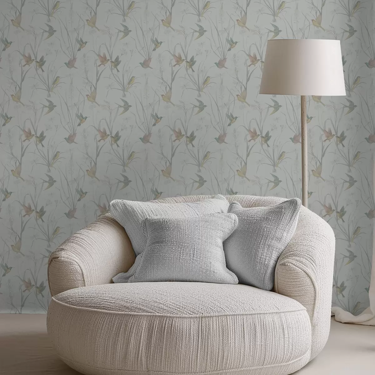 Wallpaper Birds among meadow grasses on light gray ground a00776v1
