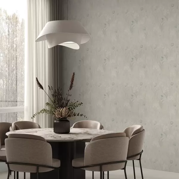 Wallpaper Gentle meadow with tulips and daisies, pastel sage a00779