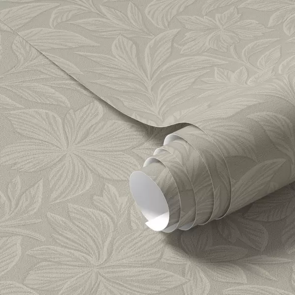 Wallpaper Embossed leaf silhouettes, warm taupe a00781