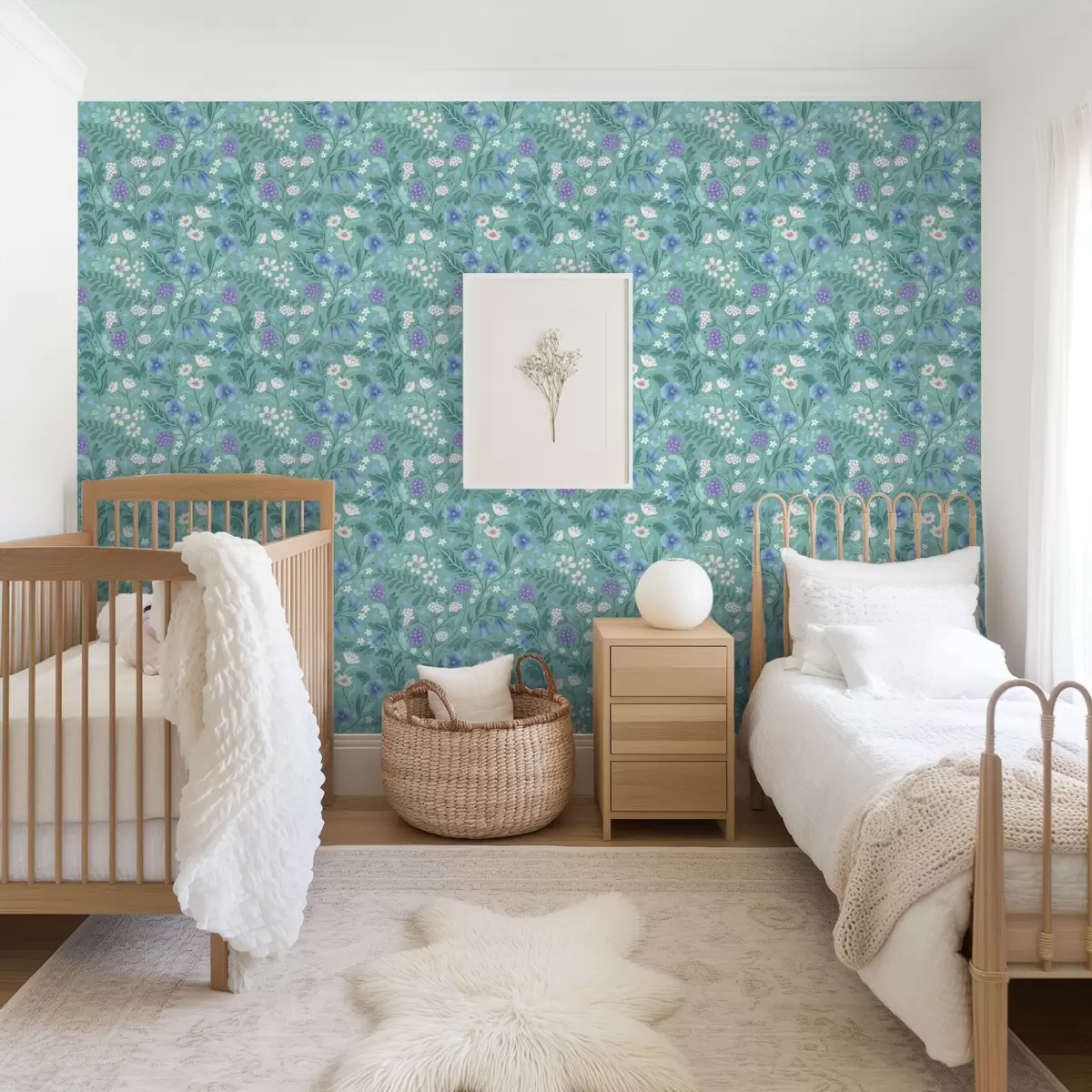 Wallpapers Wildflowers and berries on soft mint background Nr. a00849
