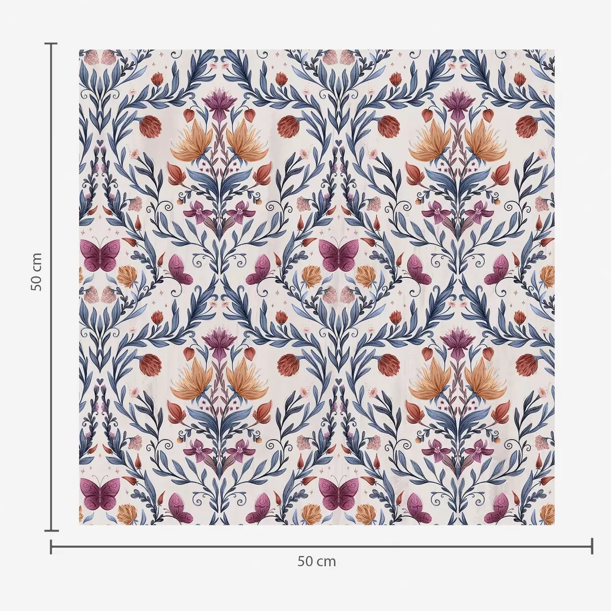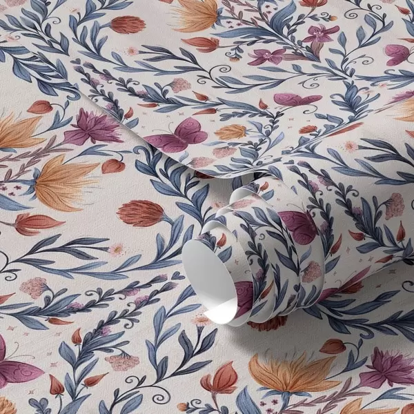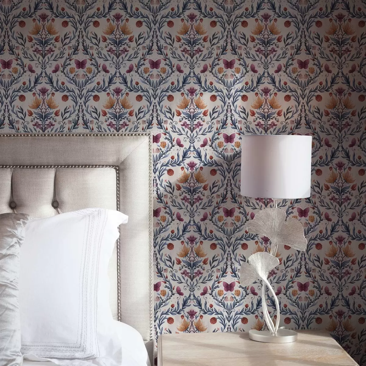 Wallpapers Floral damask with butterflies in navy and terracotta on white Nr. a00926v1