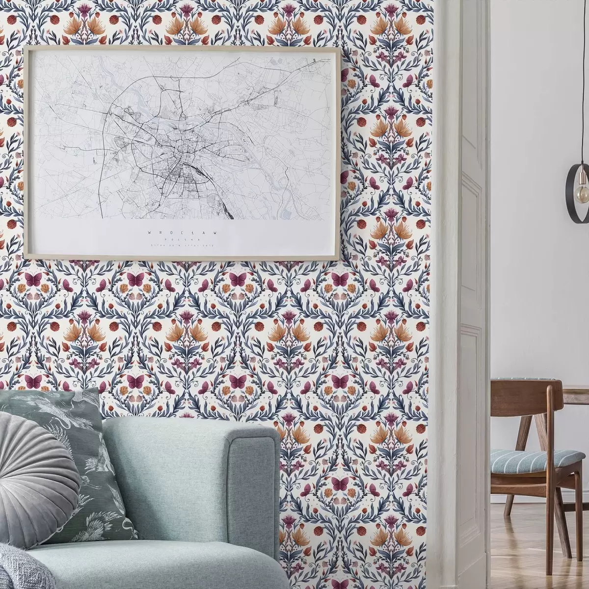 Wallpapers Floral damask with butterflies on warm cream Nr. a00926v2