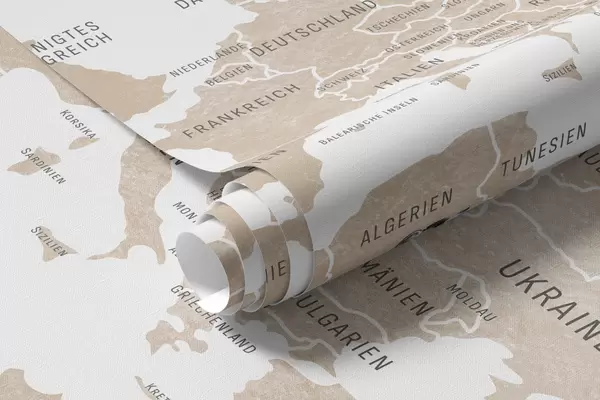 Wall murals Children's map in watercolour style with animals and hot air balloons. German language. Beige colour. Nr. c00001dev2