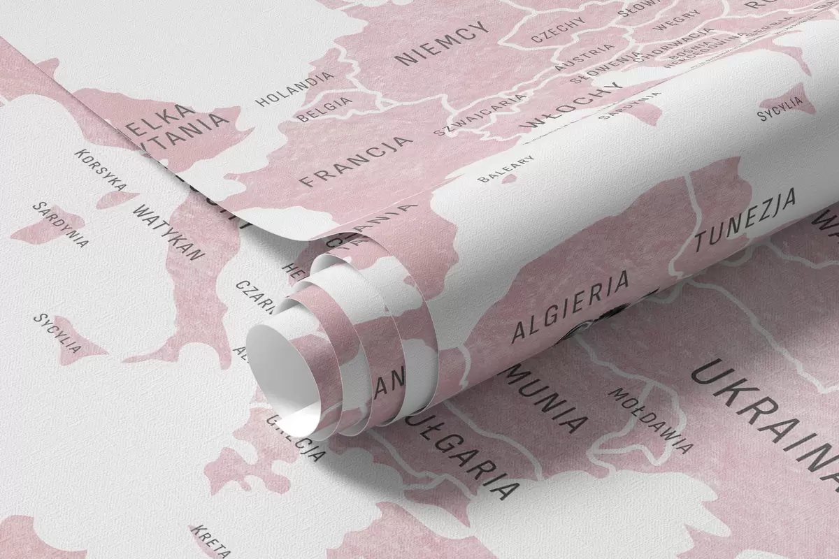 Wall murals Children's map in watercolour style with animals and hot air balloons. Polish language. Pink colour. Nr. c00001plv3