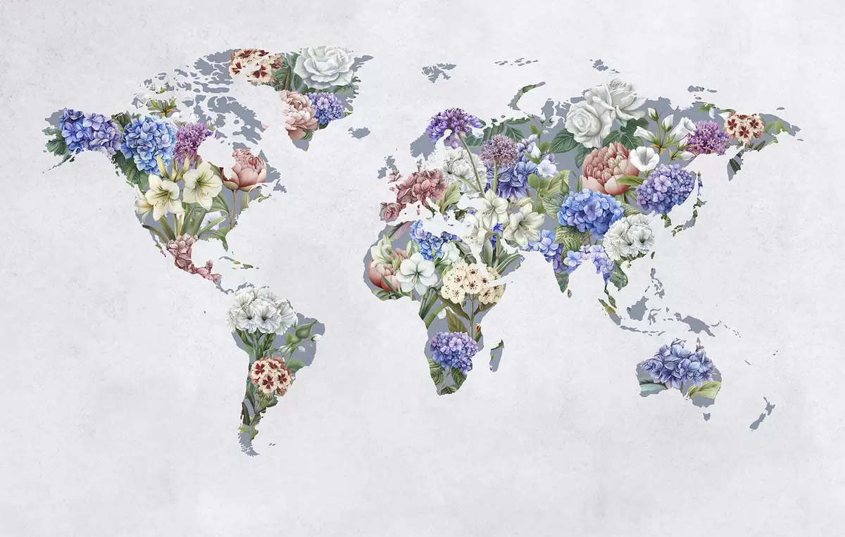 wall murals A colorful map of the world made from a variety of vibrant flowers c00006