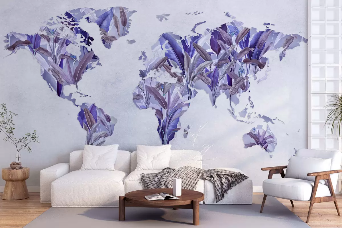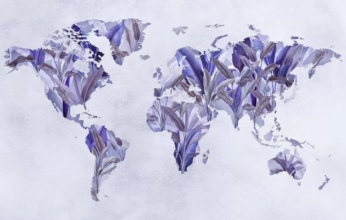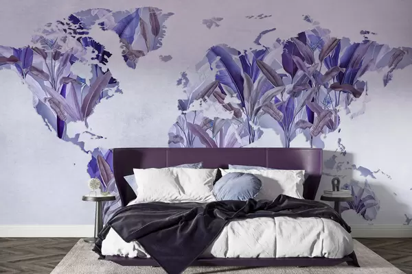 Wall murals A purple map of the world made from banana leaves Nr. c00007v1