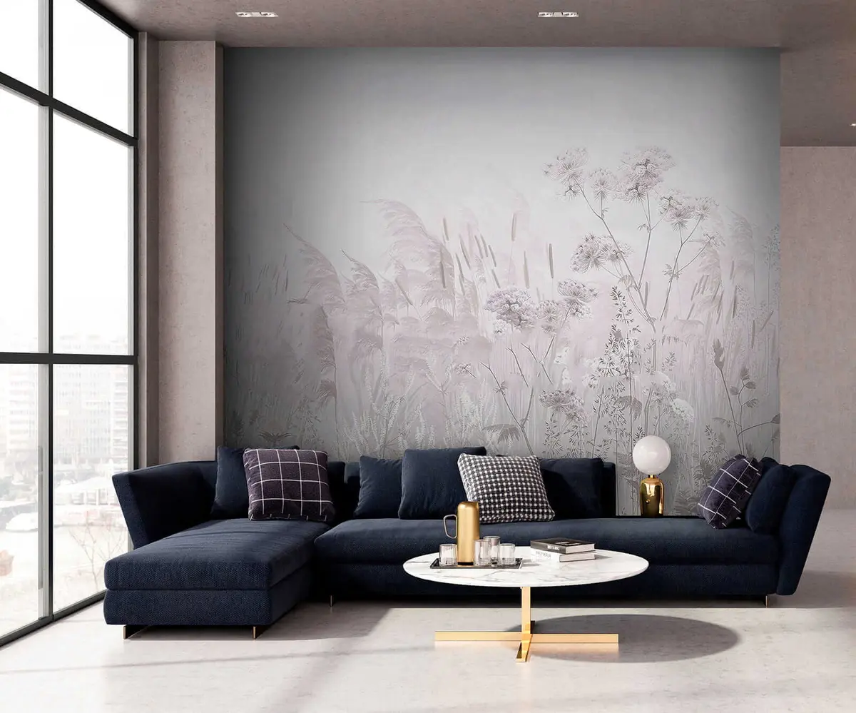 Transforming your living room with the Enchanting Herbs mural brings a serene touch of nature indoors. The soft hues and delicate floral patterns create a tranquil atmosphere, evoking feelings of peace reminiscent of a quiet grassland or meadow. This vintage nature theme enhances the space, inviting warmth and comfort. The mural acts as a soothing backdrop, making the room feel larger and more open while fostering a connection to the external world, perfect for relaxation or gatherings with loved ones.