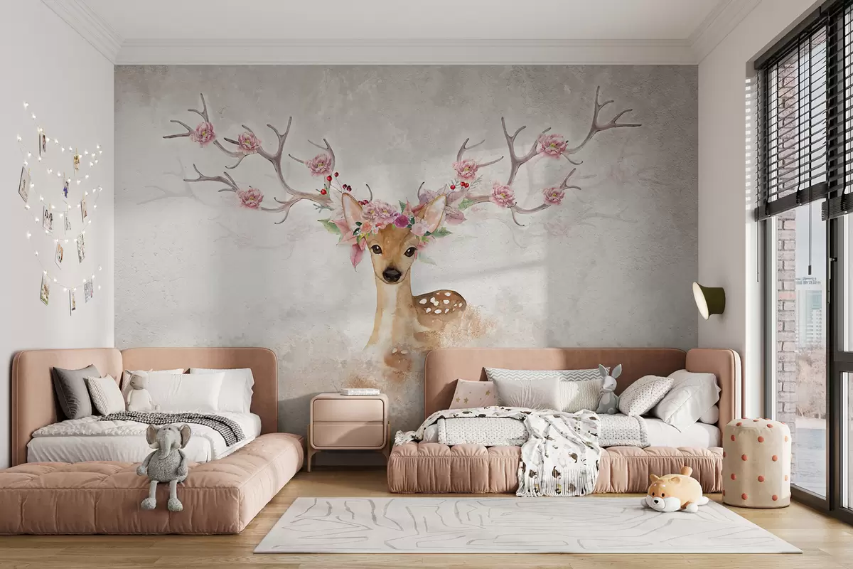 Transforming your living room with the Wall mural featuring plants, branches, and delicate floral elements has created a harmonious and inviting atmosphere. The mural adds a whimsical touch, making the space feel more lively and connected to nature. It serves as a captivating focal point, inspiring creativity and warmth. The gentle colors balance well with various decor styles, making it perfect for a girls' room, a nursery for newborns, or a playful kids' space. The overall effect is serene and enchanting, enhancing the room's charm.
