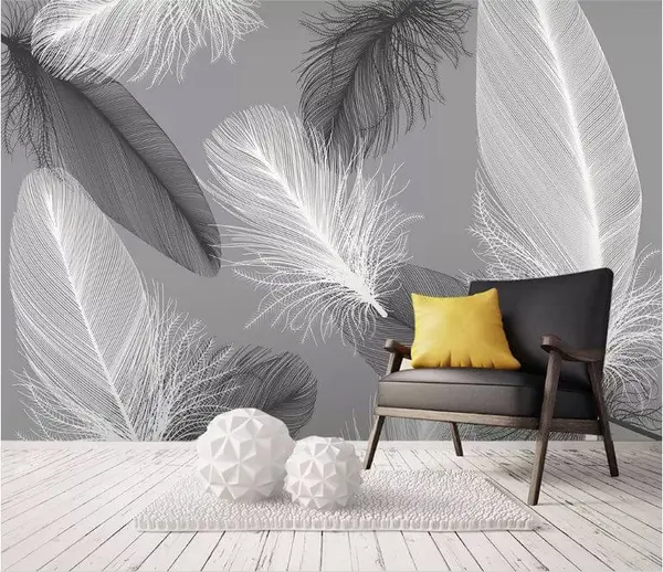 The addition of the Wall Murals featuring white and black feathers transforms the living room into a serene retreat. The delicate engravings create a sense of lightness and tranquility, enhancing the overall ambiance. The contrasting colors provide a striking visual impact, drawing attention while maintaining an elegant simplicity. This artistic touch invites a feeling of calm and sophistication, making the space more inviting and harmonious, perfect for relaxation or entertaining guests. The feathers harmonize beautifully with various decor styles, elevating the room’s aesthetic.