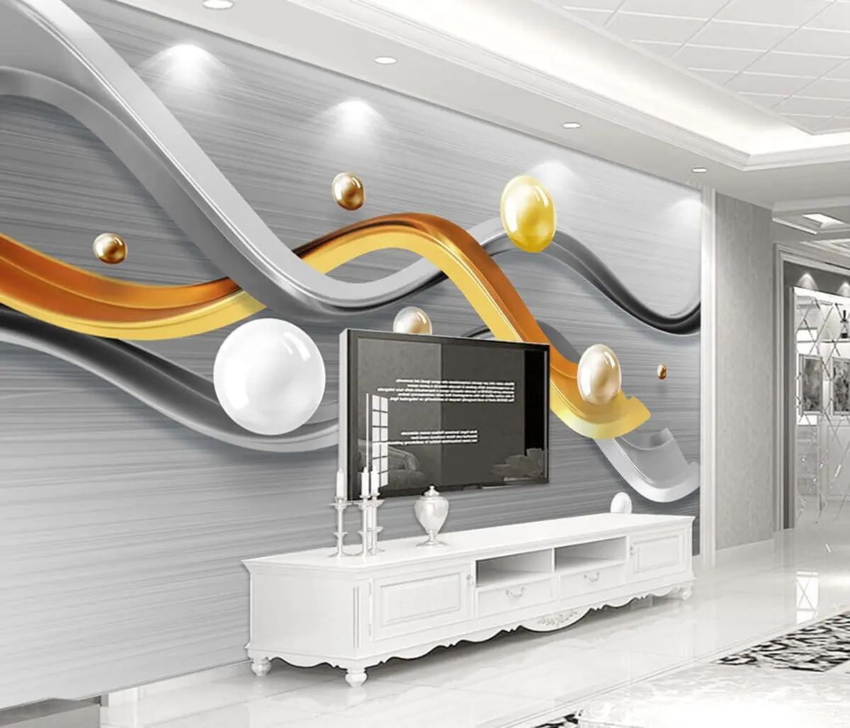 Adding the Wall Murals Wood with a rectangular shelf transforms the living room by introducing a modern and stylish focal point. The dynamic design of the mural infuses depth and sophistication, enhancing visual interest. The combination of the shelf provides a functional space for displaying decorative items, creating a harmonious flow in the room. The overall ambiance becomes more inviting and contemporary, making it a perfect area for relaxation and socializing, while the material textures add a unique touch to the decor.
