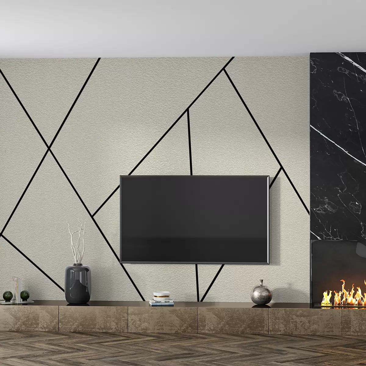 Adding the minimalist Wall Murals Crossings, design Nr. u11256, transforms the living room into a serene and stylish space. The geometric patterns and triangles create a sense of depth and interest without overwhelming the senses. This design seamlessly blends with various decor styles, enhancing overall harmony. The neutral tones provide a calm backdrop, allowing furniture and accessories to stand out beautifully. The space feels more expansive and inviting, perfect for both relaxation and social gatherings, all while maintaining an understated elegance.