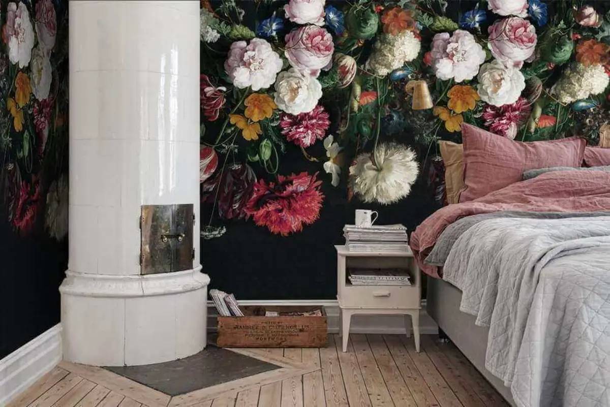 Introducing the Wall Mural Colorful Bouquet Nr. u19866 transforms the living room into a vibrant sanctuary. The rich colors of the floral design deeply contrast against the baroque dark backdrop, adding an element of sophistication. This artwork enhances the atmosphere, bringing warmth and inviting charm. The intricate blossoms evoke a sense of nature indoors, creating an uplifting environment. Each glance offers a refreshing escape, making the space feel more dynamic and alive, while the black undertone adds depth and elegance to your decor.