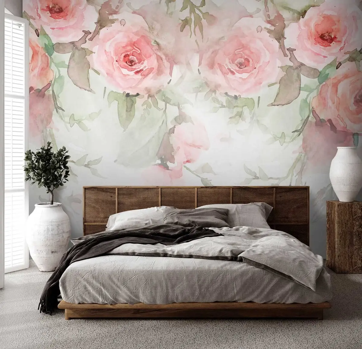 Transforming your living room with the Pink watercolor roses mural brings a refreshing and vibrant atmosphere. The soft hues of pink and gentle greens create a calming backdrop that invites relaxation and warmth. This beautiful design enhances natural light, making the space feel larger and more inviting. The delicate rose patterns add a touch of elegance, effortlessly tying together your decor. Each glance at the mural evokes a sense of serenity and joy, turning your home into a delightful retreat filled with artistic charm.