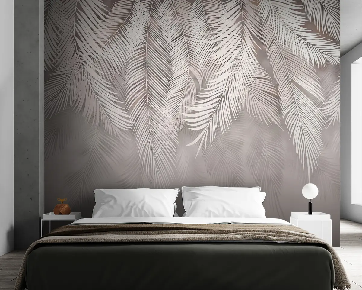 The addition of Wall Murals Delicate Drooping Leaves transforms your living room into a serene oasis. The soft beige backdrop beautifully complements the intricate palm leaves, creating a harmonious and calming atmosphere. The delicate design adds depth and texture, drawing the eye and inviting a sense of tranquility. This mural enhances natural light, making the space feel more open and welcoming. Overall, it elevates the aesthetic, offering a fresh and elegant touch that embodies a stylish, relaxed environment.