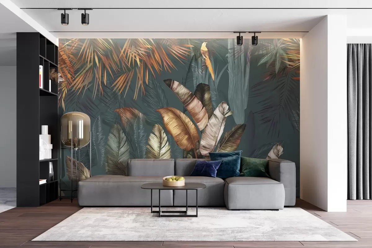 Transforming your living room with the Wall Murals Bright Tropical Jungle adds a refreshing vibrancy that invigorates the space. The lush palm leaves create a serene, tropical oasis, enhancing the atmosphere with a sense of calm. The rich colors and intricate details bring depth to the walls, making the room feel larger and more open. This mural not only serves as a stunning focal point but also invites a touch of nature indoors, contributing to a relaxing and inviting environment. The overall effect is both energizing and harmonious, perfect for modern living.
