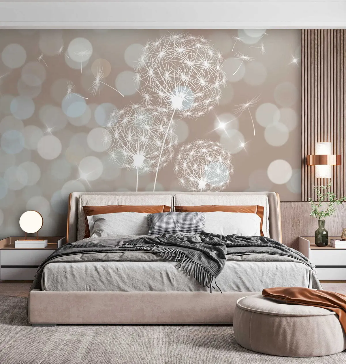 The addition of the Wall Murals Dandelions in Radiance Nr. u52507 transforms the living room into a serene oasis. The delicate dandelion design creates a sense of whimsy and tranquility, inviting a light, airy feel to the space. Soft colors blend harmoniously, enhancing natural light and making the room appear more spacious. The overall ambiance becomes calming, perfect for relaxation or socializing. Guests are often drawn to the intricate details, fostering conversation and admiration, while the dandelions symbolize hope and new beginnings, adding a touch of inspiration to your home.