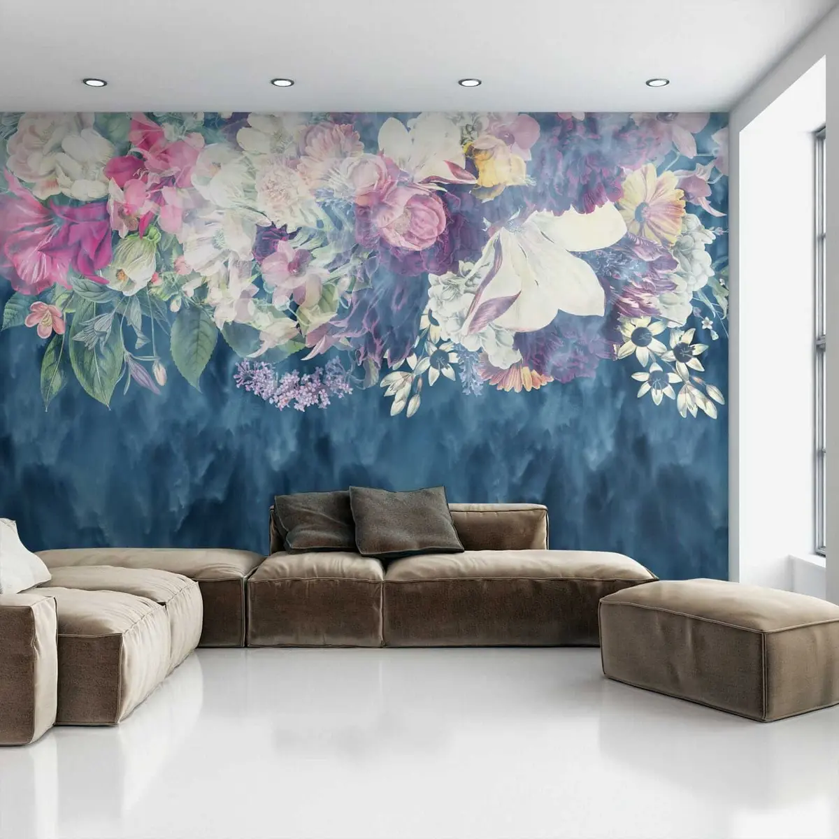 Transforming your living room with the Wall mural Flowering in the fog Nr. u52616 introduces a serene, botanical art touch that elevates the entire space. The delicate peonies and lush foliage create a sense of tranquility, giving the room a fresh and inviting atmosphere. This vibrant design draws the eye and fosters a connection with nature, enhancing the overall ambiance. The mural serves as a captivating focal point, harmonizing beautifully with various decor styles while enriching the visual appeal of your home.