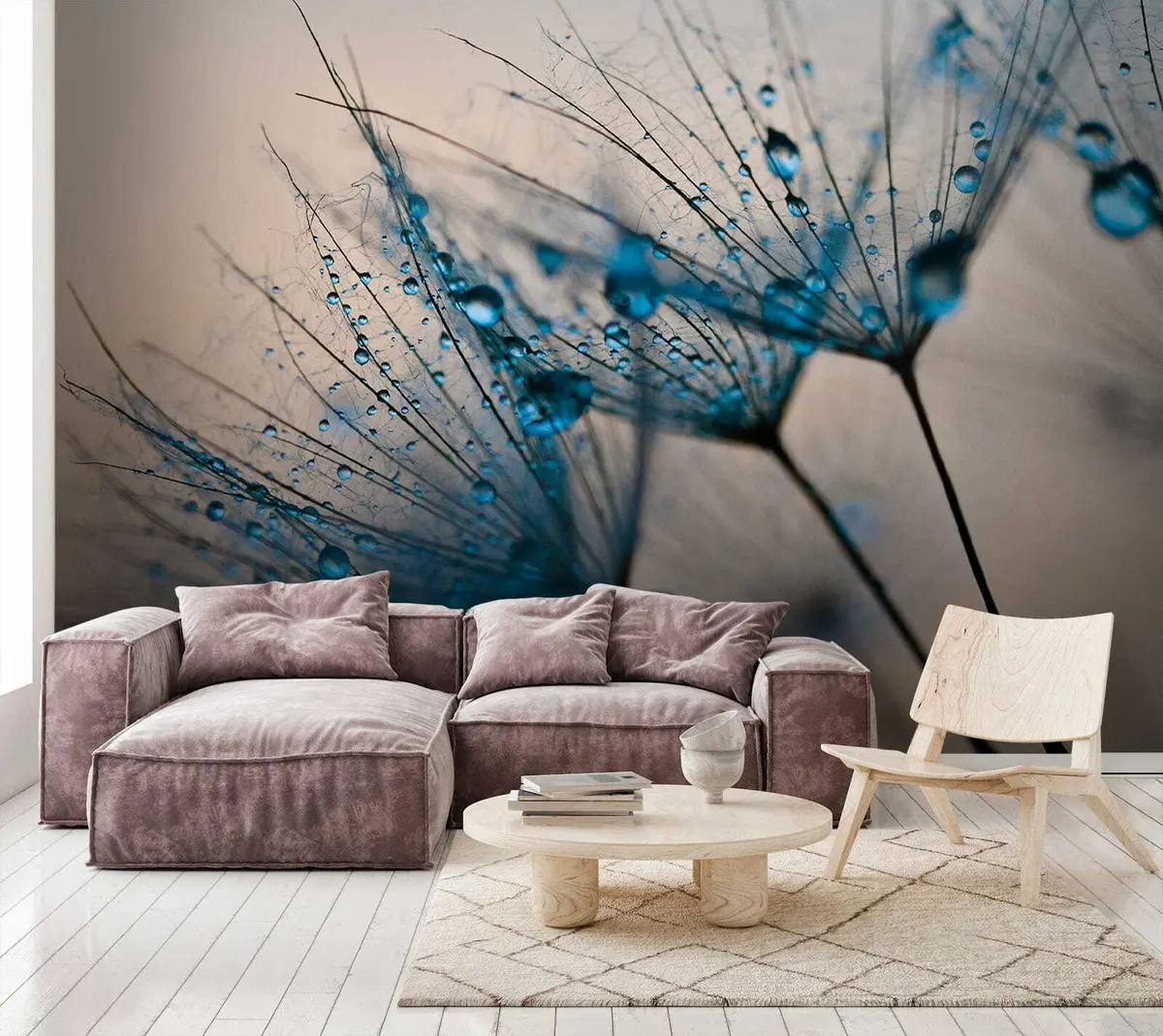 Transforming your living room with the Wall mural of dandelions adorned with dewdrops brings a fresh and serene atmosphere. The delicate features of the dandelions, complemented by the soft glistening of the water droplets, create a soothing backdrop that evokes a sense of tranquility and connection to nature. This mural infuses life into the space while nurturing a peaceful ambiance, making it the perfect setting for relaxation or social gatherings. The overall effect is a harmonious, inviting environment that enhances the beauty of your home.