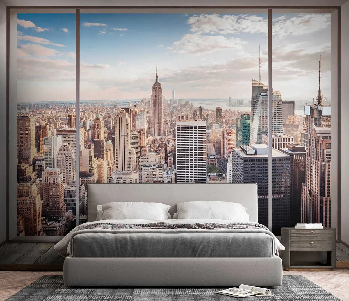 The addition of the Wall mural View of New York transforms the living room into an inviting urban oasis. The panoramic view creates an illusion of spaciousness, making the room feel larger and more open. The vibrant cityscape sparks inspiration and energy, bringing a touch of cosmopolitan charm indoors. Natural light reflects beautifully off the mural, enhancing the overall brightness and warmth of the space. Guests are captivated by the stunning representation of New York, adding a dynamic focal point that encourages conversation and admiration.