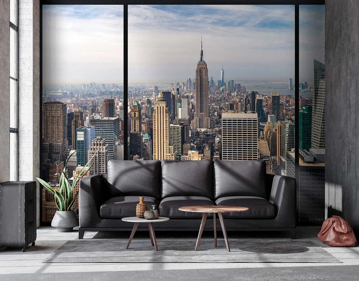 Transforming your living room with the Wall Mural View of the City Nr. u68001 brings a vibrant slice of New York City into your space. The majestic skyline, highlighted by iconic buildings, creates an inviting atmosphere that feels both modern and dynamic. This mural captivates attention, serving as a stunning focal point that expands the visual space and inspires a sense of adventure. It blends effortlessly with various decor styles, enhancing your living room's overall aesthetic while evoking the energy and charm of NYC.