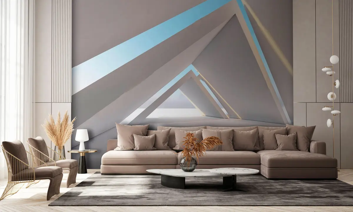 Introducing the Wall Murals Triangular Tunnel Nr. u72279 into your living room creates a striking illusion of spaciousness and depth, transforming the ambiance entirely. The 3D tunnel effect draws the eye, inviting exploration and intrigue. Its minimalist design encourages a serene atmosphere, while the geometric shapes enhance modern aesthetics. This mural not only expands your space visually but also harmonizes beautifully with other decorations, making your living room feel more dynamic and welcoming.