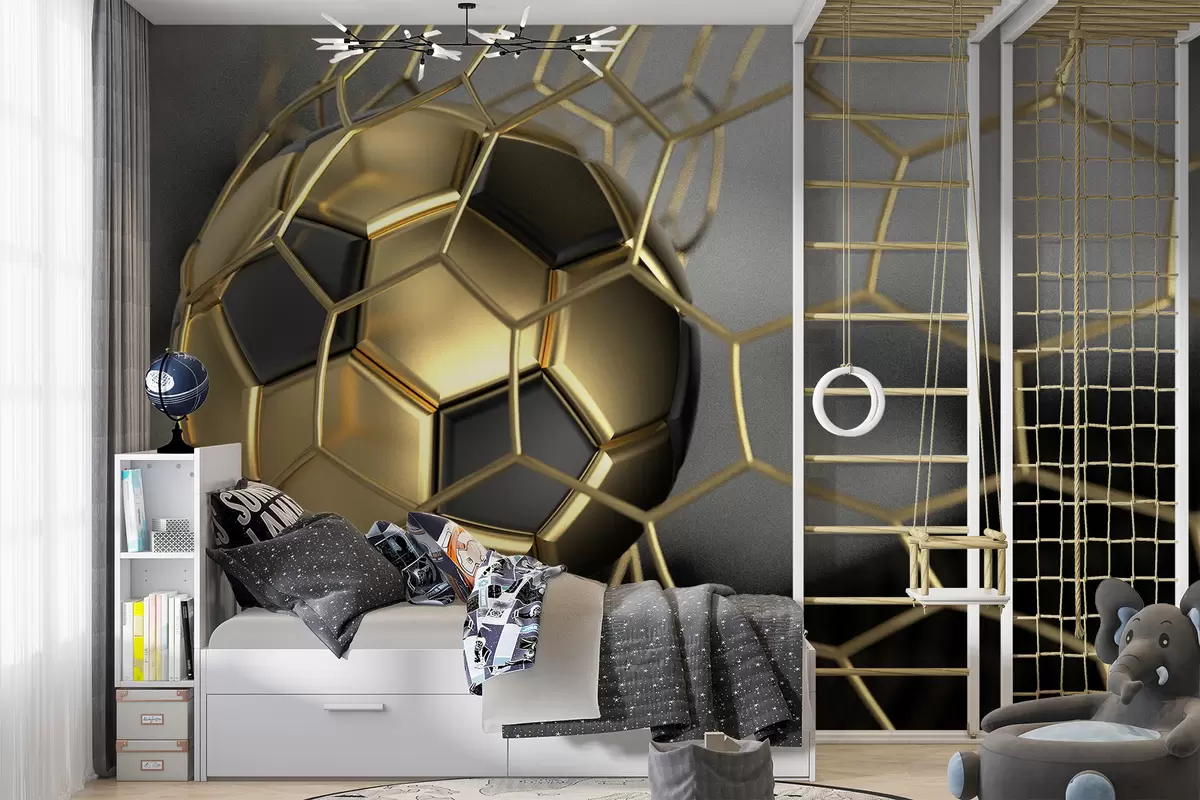 Transforming your living room with the wall mural featuring a soccer ball in the goal adds a vibrant touch that energizes the space. This impressive 3D design becomes a focal point, creating a playful and inspiring atmosphere ideal for a boy's room. The mural ignites a passion for football, encouraging creativity and imaginative play. Its dynamic imagery enhances the overall decor while reinforcing a love for sports, making it the perfect addition for any young athlete's haven.