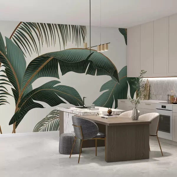 The addition of Wall Murals Palm Leaves Nr. u74283 transforms your living room into a vibrant oasis. The lush palm leaves create a refreshing jungle vibe, enhancing the overall ambiance and bringing nature indoors. The rich greens add depth and warmth, making the space feel more inviting and relaxing. As light filters through, it highlights the intricate patterns of the leaves, creating a serene atmosphere perfect for unwinding or entertaining. This mural effortlessly elevates your interior, fostering a sense of tranquility and connection with the outdoors.