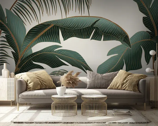 The addition of Wall Murals Palm Leaves Nr. u74283 transforms your living room into a vibrant oasis. The lush palm leaves create a refreshing jungle vibe, enhancing the overall ambiance and bringing nature indoors. The rich greens add depth and warmth, making the space feel more inviting and relaxing. As light filters through, it highlights the intricate patterns of the leaves, creating a serene atmosphere perfect for unwinding or entertaining. This mural effortlessly elevates your interior, fostering a sense of tranquility and connection with the outdoors.