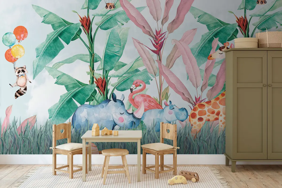Adding the Fun and Bright Jungle wall mural instantly transforms your living room into a whimsical escape. The vibrant colors and playful animal characters create a lively and inviting atmosphere, perfect for kids. This enchanting forest design sparks imagination and joy, making it an ideal backdrop for family activities and playtime. The mural not only enhances the decor but also fosters a sense of wonder and adventure, making your space feel more cheerful and engaging for everyone.