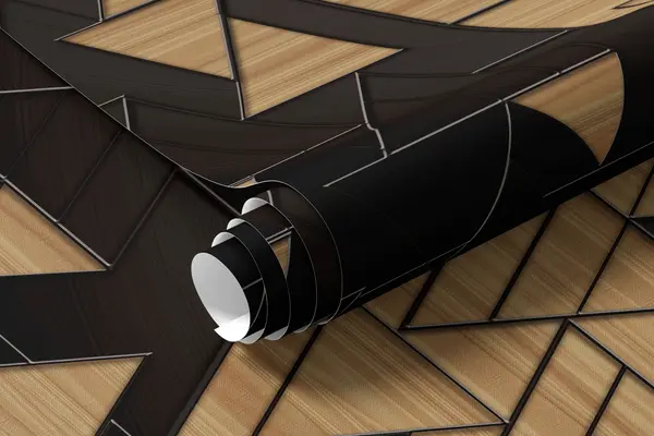 Wall murals 3D dark gray and wood grain triangles with embossed lines Nr. u75167