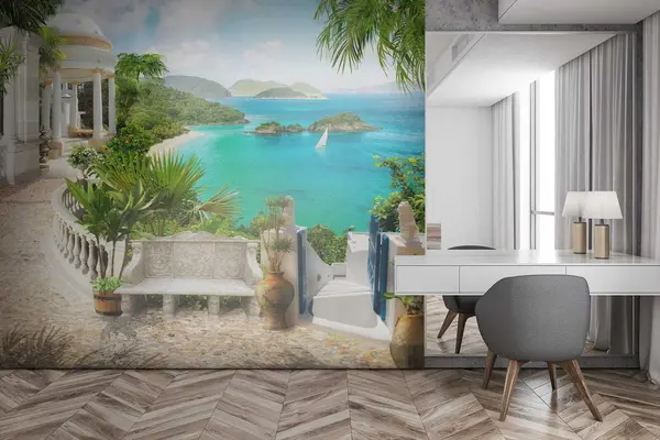 Transforming your living room with the Wall mural "Rest on the Shore" evokes the serene beauty of Positano. The image expands the space, creating an inviting atmosphere that feels both airy and open. Lush greens and vibrant blues bring a refreshing touch, reminiscent of coastal tranquility. The mural acts as a stunning focal point, enhancing your home's aesthetics while providing a peaceful escape. This enchanting setting fosters relaxation, making it a perfect backdrop for gatherings or quiet moments. Enjoy the harmonious blend of nature and elegance in your living space.