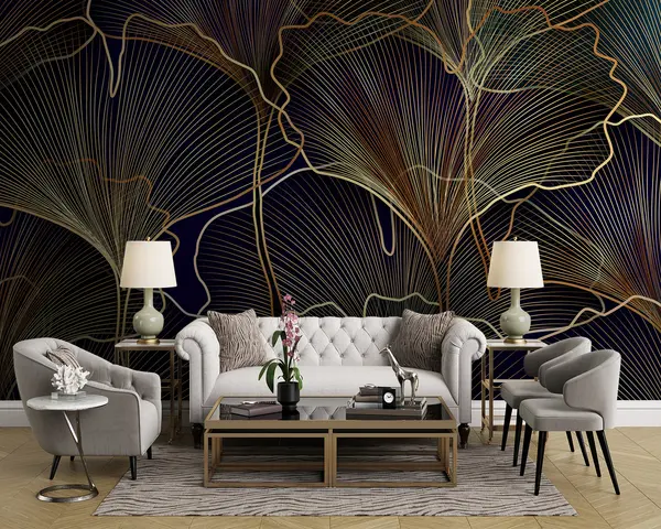 Integrating the Ginkgo leaves mural into the living room transforms the space into a serene oasis. The botanical art enriches the atmosphere, bringing a touch of nature indoors while maintaining a sophisticated elegance. This art deco piece creates a striking focal point, enhancing the room’s depth and character. The intricate engravings add texture and interest, inviting conversation and admiration. Overall, the mural elevates aesthetics, making the living room feel warm and inviting, perfect for relaxation and gatherings.
