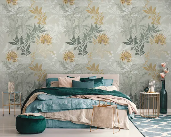 Transforming your living room with the Wall murals pattern featuring leaves Nr. u94468 introduces a refreshing and vibrant atmosphere. The herbal and botanical art brings the essence of nature indoors, creating a serene and inviting space. The intricate patterns add depth and character, making the walls come alive with rich textures and subtle colors. This enhancement blends elegance with a natural vibe, encouraging relaxation and stimulating conversations. Overall, it elevates the aesthetic of the room, making it feel warm and welcoming.