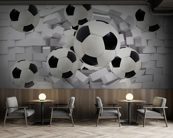 Transforming your living room with wall murals of soccer balls set against a brick background elevates the space into an energetic haven. The vibrant design imbues the room with a playful atmosphere, perfect for a boy's room. It adds depth, creating an illusion of motion that captivates the eye. The combination of the textured brick wall and dynamic soccer graphics invites an exciting and sporty vibe, inspiring creativity and joy. This innovative decor choice ensures a motivational environment for both relaxation and fun activities.