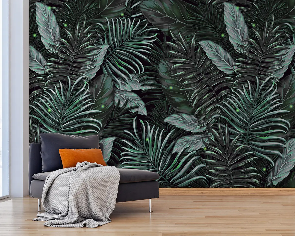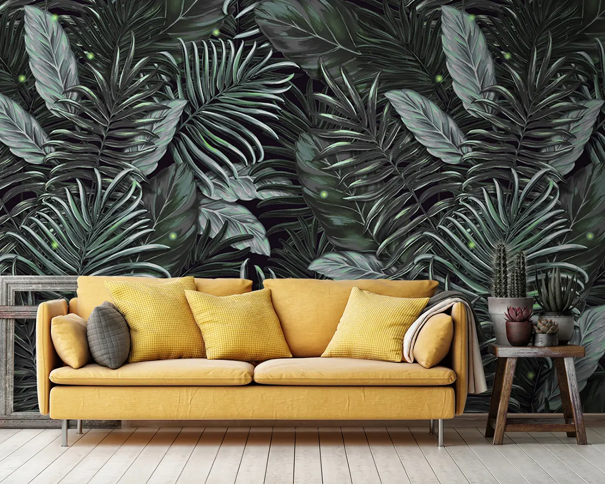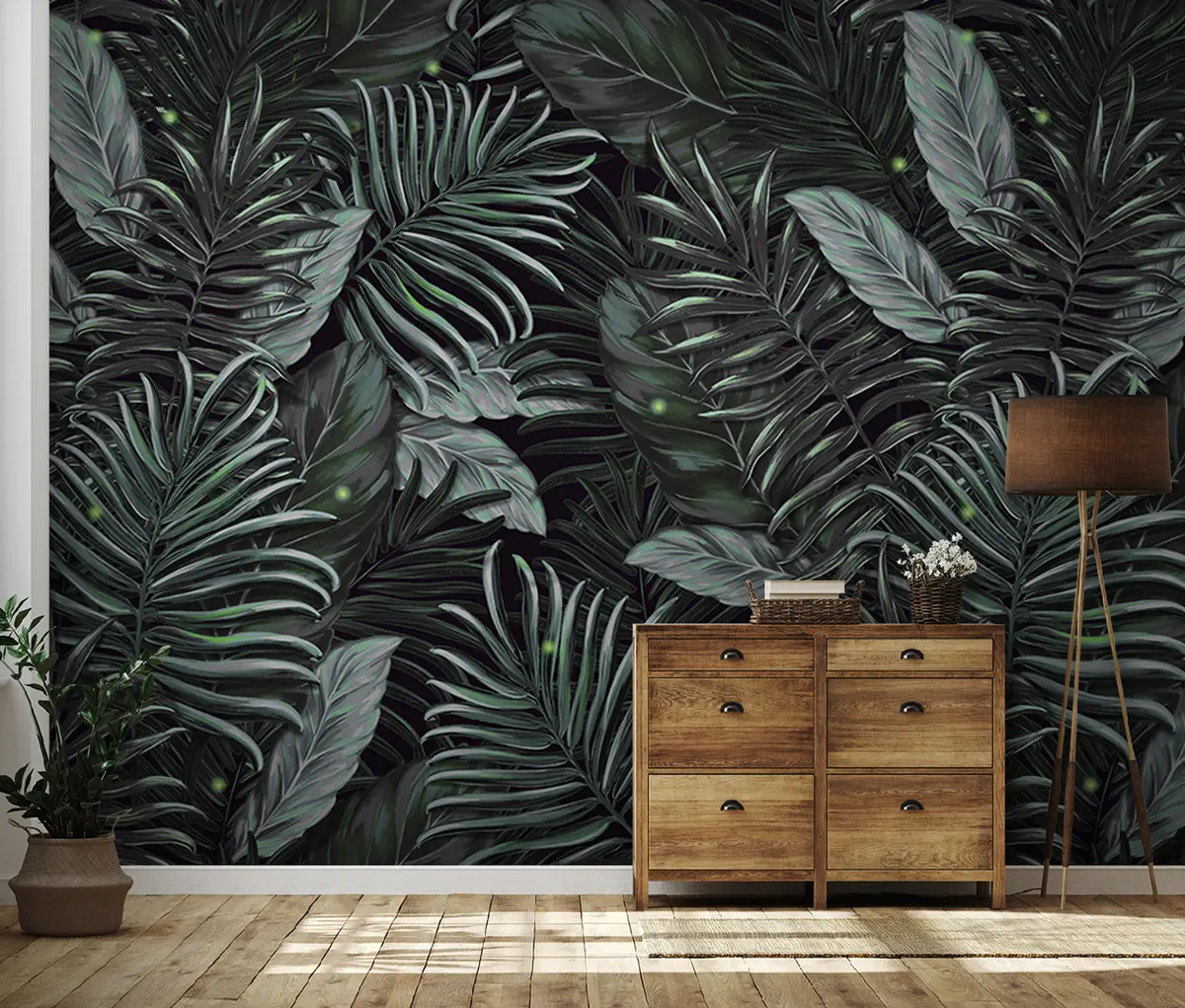 Transforming your living room with Wall murals Leaves Nr. u95936 brings a refreshing and vibrant atmosphere. The lush palm leaves create a soothing backdrop, evoking the tranquility of a jungle retreat. This mural effortlessly enhances the space, infusing it with a sense of nature and life. The rich greens harmonize beautifully with various decor styles, making the room feel inviting and rejuvenating. This design not only broadens the visual space but also encourages relaxation, perfect for unwinding after a long day.
