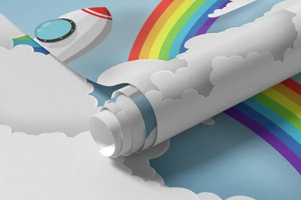 Wall murals Launching a rocket into the sky above the clouds and rainbow Nr. u96299
