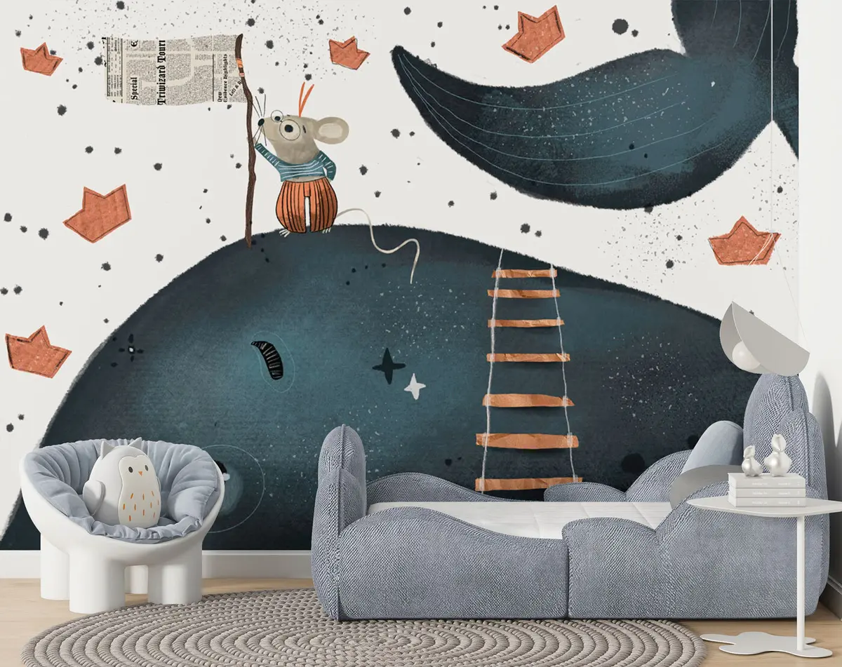 Transforming your living room with the wall mural of "The Adventures of a Mouse and a Whale" infuses a whimsical charm and cheerful energy into the space. The playful imagery engages the imagination of children while creating a welcoming atmosphere that encourages creativity and storytelling. The subtle colors harmonize beautifully with existing decor, enhancing the overall coziness of the room. This mural fosters a nurturing environment, perfect for family bonding time and playful exploration, making it an ideal choice for hygge kids.