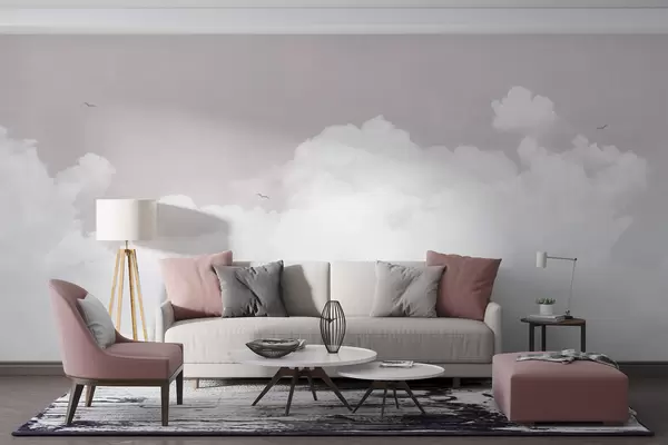The addition of vintage cloud murals in soft pink has transformed the living room into a serene oasis. The gentle hues create a calming atmosphere, making the space feel airy and light. The dreamy clouds infuse the room with a sense of tranquility, inviting relaxation and daydreaming. This new backdrop enhances natural light, giving an effortless charm that complements furnishings. With every glance, the cloud-filled sky soothes the mind while adding a touch of whimsical elegance to the overall decor.