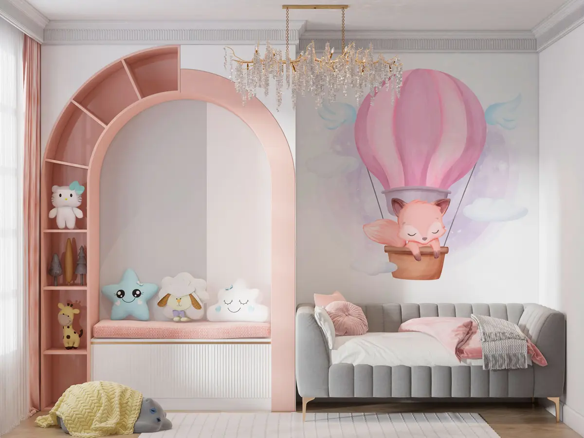 Adding the wall mural illustration of a fox on a hot air balloon transforms your living room into a whimsical and enchanting space. The playful design brings warmth and charm, creating a cheerful atmosphere perfect for relaxation or play. It sparks imagination, making it an ideal choice for a girls' room or kids' area. The soft colors and delightful imagery pair beautifully with other decor, enhancing the overall aesthetic and inviting creativity into the room. This artwork not only decorates but also inspires joyful moments for everyone.