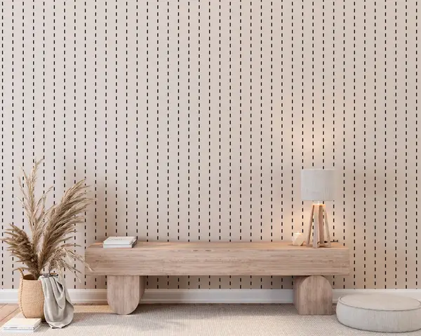 The introduction of the linear wallpaper in a minimalistic Scandinavian style has transformed the living room into a serene retreat. The subtle patterns create a calming atmosphere, enhancing the sense of space and light. The clean lines and neutral tones foster a harmonious environment, making the room feel more open and inviting. This aesthetic encourages relaxation and mindfulness, perfectly embodying the essence of hygge. Overall, the space feels modern, cohesive, and refreshingly uncluttered, promoting a warm and welcoming vibe.
