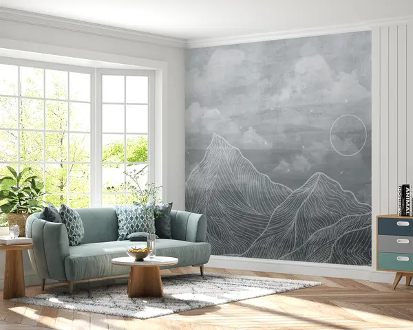 Transforming your living room with the Wall Murals Grunge Texture featuring Clouds and Mountains adds depth and tranquility to the space. The soft grey tones evoke a serene atmosphere, making it an ideal backdrop for relaxation. The layered mountain peaks create a sense of dimension, while the ethereal clouds bring a touch of nature indoors. This nature-themed art elevates the interior, encouraging a calm and reflective environment, perfect for both intimate gatherings and quiet moments of solitude.
