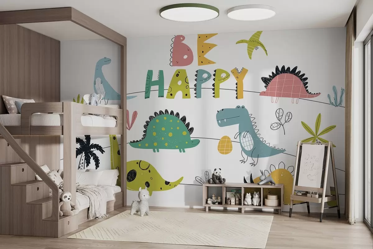 The addition of the Wall murals Dinosaur Adventures brings a vibrant and playful atmosphere to the living room. The colorful depictions of friendly dinosaurs instantly uplift the space, sparking joy and conversation. Soft hues complement the existing decor, while the delightful imagery encourages creativity and imagination. This mural transformed the room into a cheerful environment, perfect for family gatherings or playtime, creating a warm and inviting atmosphere filled with pure joy, ideal for a nursery setting.
