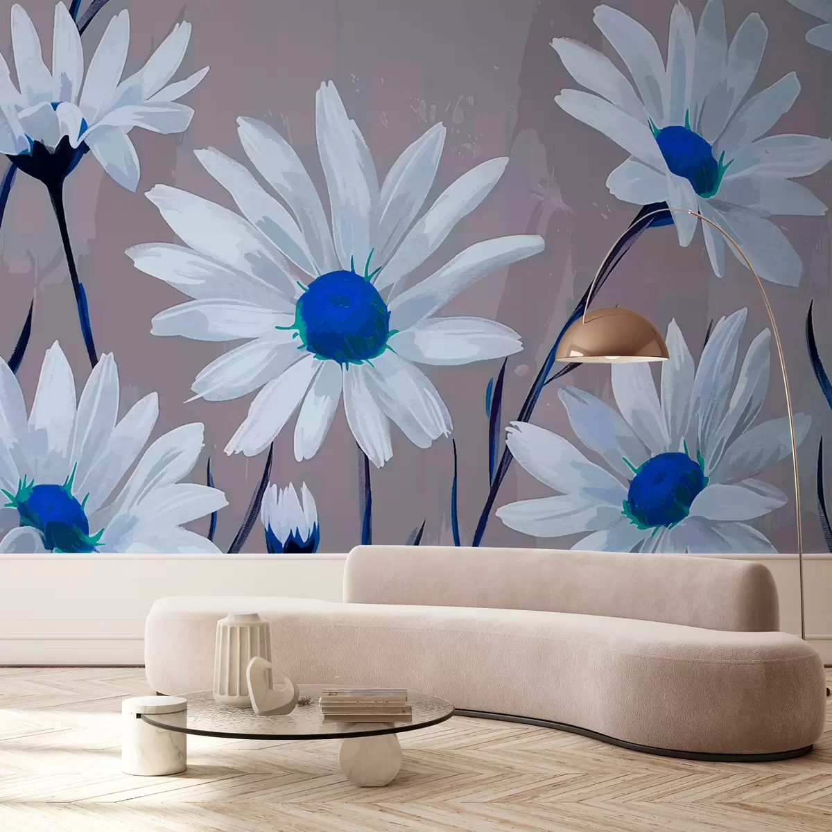 The introduction of the Wall Murals Daisies Nr. w00996v1 in your living room transforms the space into a serene oasis. The delicate pastel tones and neutral light create a calming ambiance, while the cheerful daisies add a touch of freshness and vibrancy. This design effortlessly enhances the overall mood, making the room feel more inviting and spacious. The combination of floral elements with soft colors contributes to a harmonious environment, perfect for relaxation and enjoyment with family and friends.