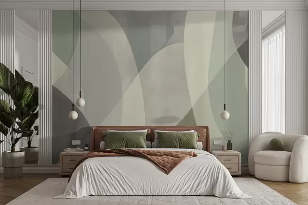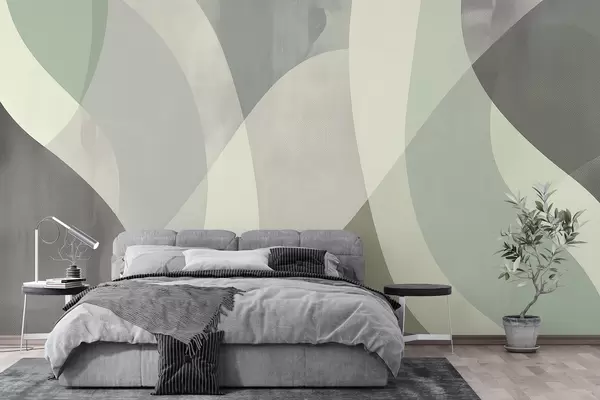 wall murals Soft curves in muted tones with flowing lines and green gradients, minimalist and modern w01334