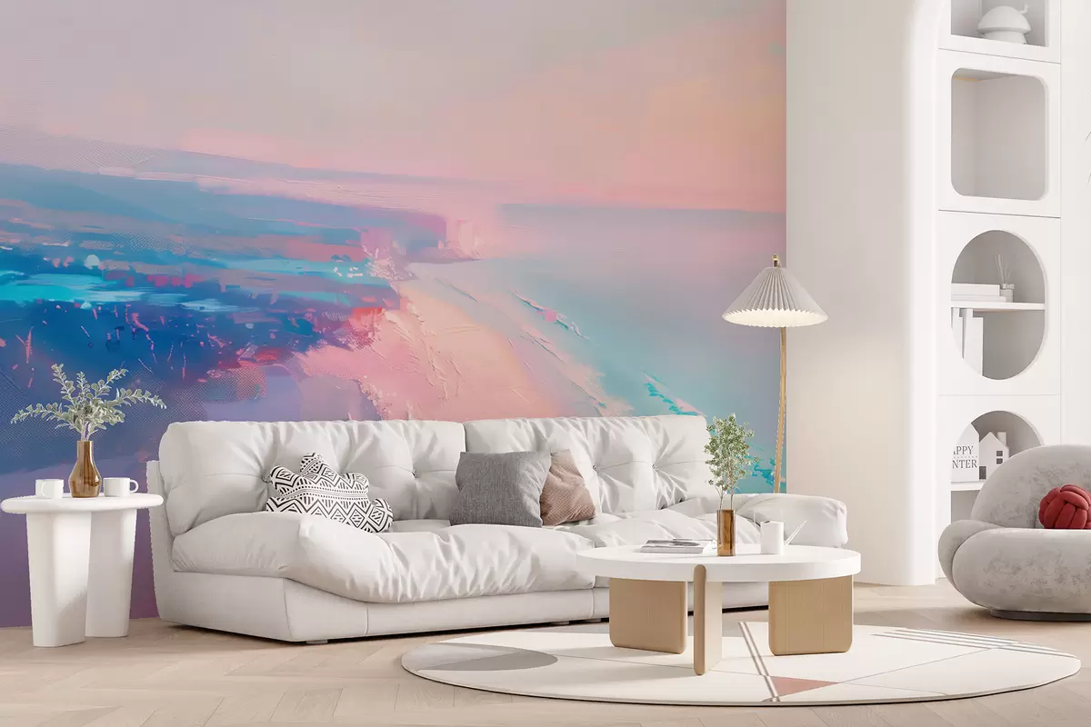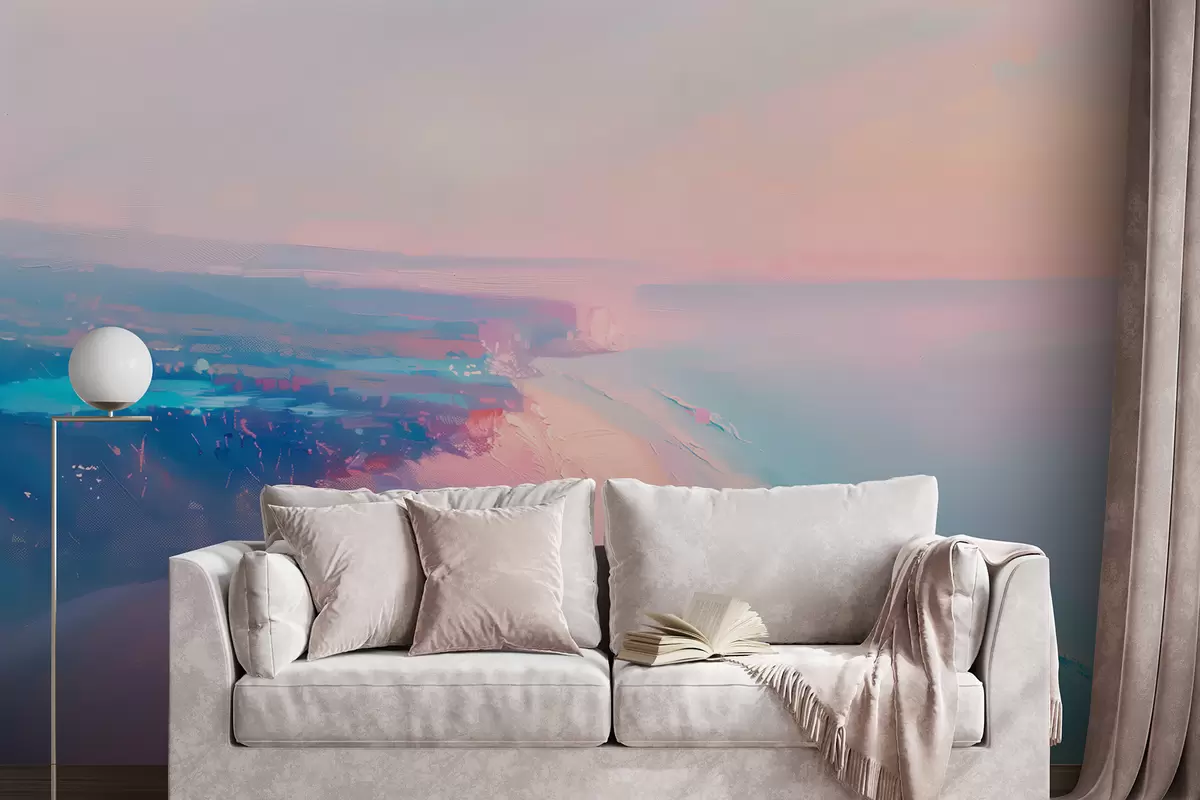 Transforming your living room with the Wall mural Pastel horizon featuring a dreamy seascape brings a fresh and inviting atmosphere. The soft seafoam tones create a serene backdrop, enhancing natural light and making the space appear brighter. The watercolor style evokes a sense of tranquility, perfectly complementing coastal decor. This mural not only adds visual interest but also creates an uplifting ambiance, encouraging relaxation and daydreaming about sun-soaked beaches and gentle waves.