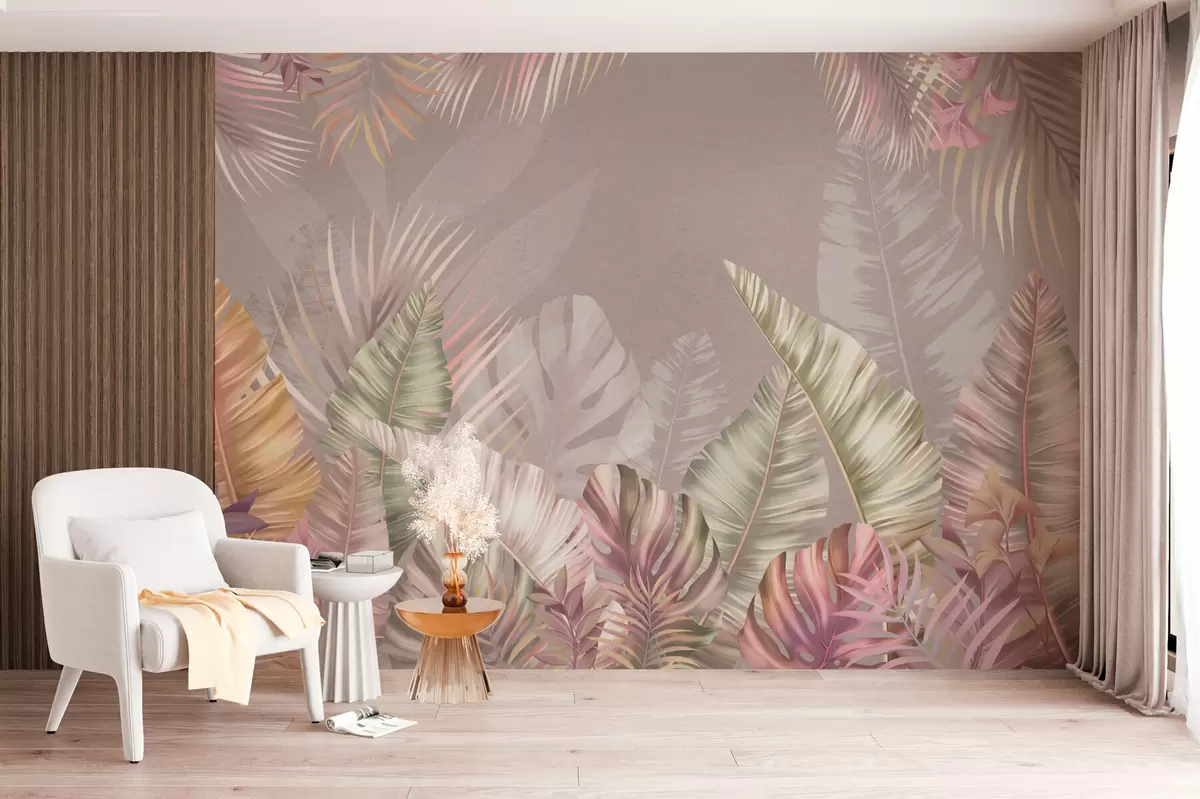 Wall murals Tropical leaves in soft pastel hues Nr. w01684
