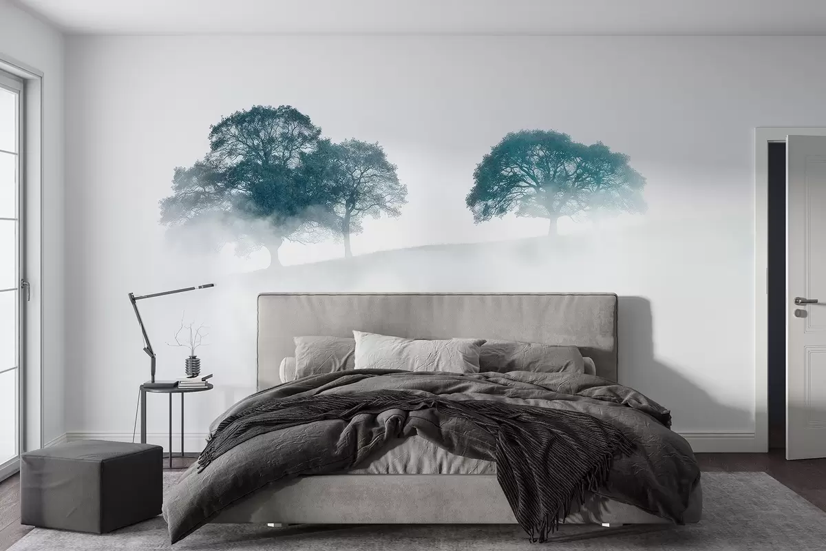 Wall murals Trees on the hill, minimalism, nature, blue color palette Nr. w02148v1