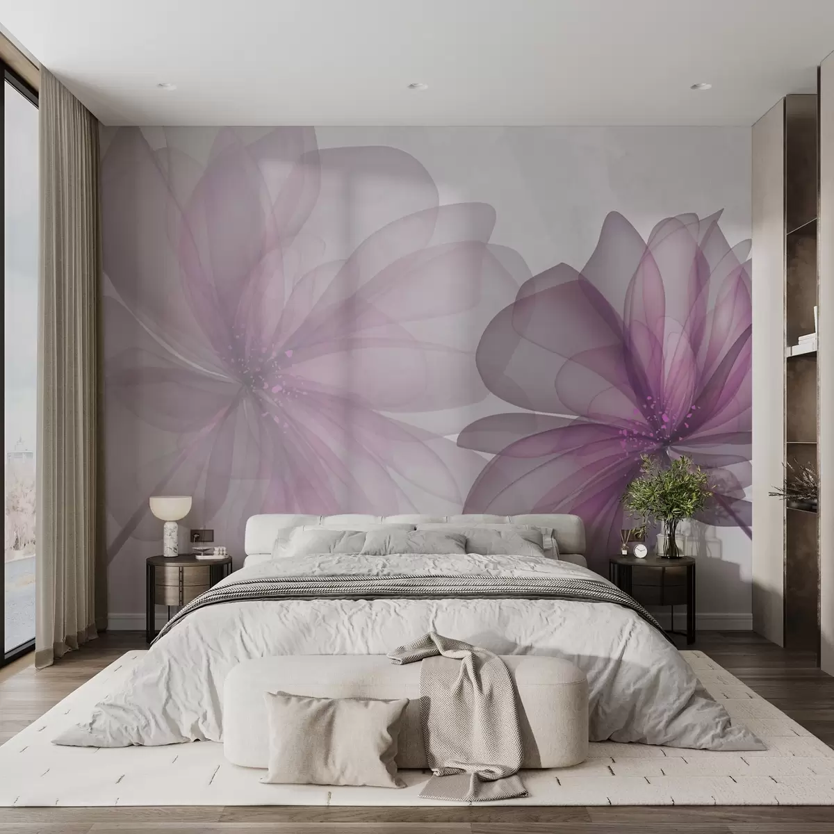 Wall murals translucent large pink flowers Nr. w02205
