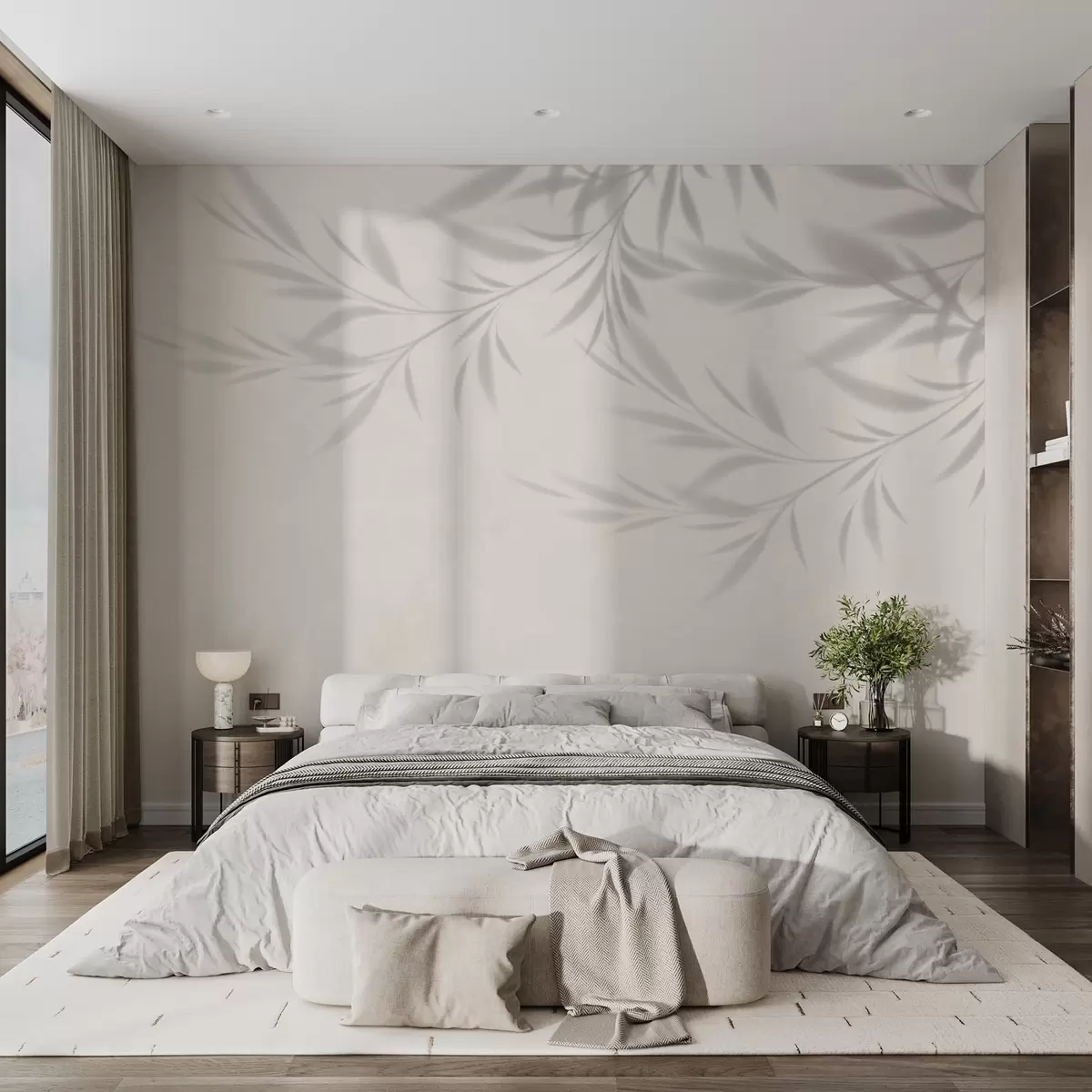 Wall murals Shadow of branches and leaves on a beige background Nr. w02283v1