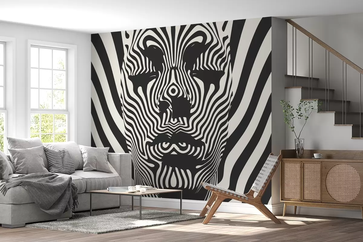 Wall murals Op art style trellis with abstract face, wavy lines on light colored background. Nr. w02285